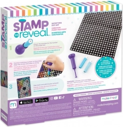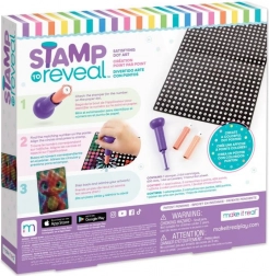 Zestaw Stamp to Reveal oferuje łatwy, a zarazem wciągający sposób tworzenia efektownych kropkowanych ilustracji. Wystarczy przyłożyć stempel do numeru na kasecie z kropkami, znaleźć ten sam numer na plakacie, wyrównać okręgi i odbić. Z każdym odciskiem motyw staje się coraz bardziej widoczny, a gotowy kolorowy plakat z wyrazistym smokiem jest przygotowany do powieszenia.