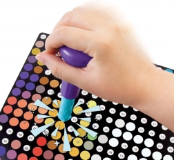 Wszystko jest gotowe zaraz po otwarciu pudełka – ergonomiczny stempel dla wygodnego trzymania, dokładnie oznaczone kropki dla bezbłędnej orientacji oraz ponad 600 kropek dla długotrwałej zabawy. Idealny do rozwijania motoryki małej, koncentracji i cierpliwości, a jednocześnie świetny wybór do spokojnej, relaksującej kreatywności.