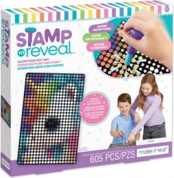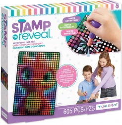 Odkryj zabawę z kreatywnym zestawem Stamp to Reveal, w którym za pomocą stempla wypełniasz ponumerowane kropki i stopniowo odsłaniasz kolorowy plakat z wyrazistym motywem smoka. W opakowaniu znajdziesz stempel, kasety z kropkami oraz ponad 600 kropek – wszystko, czego potrzebujesz, aby stworzyć własne kropkowane dzieło sztuki gotowe do powieszenia. Świetny prezent dla dzieci od 6 lat.