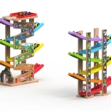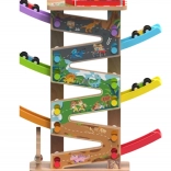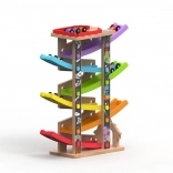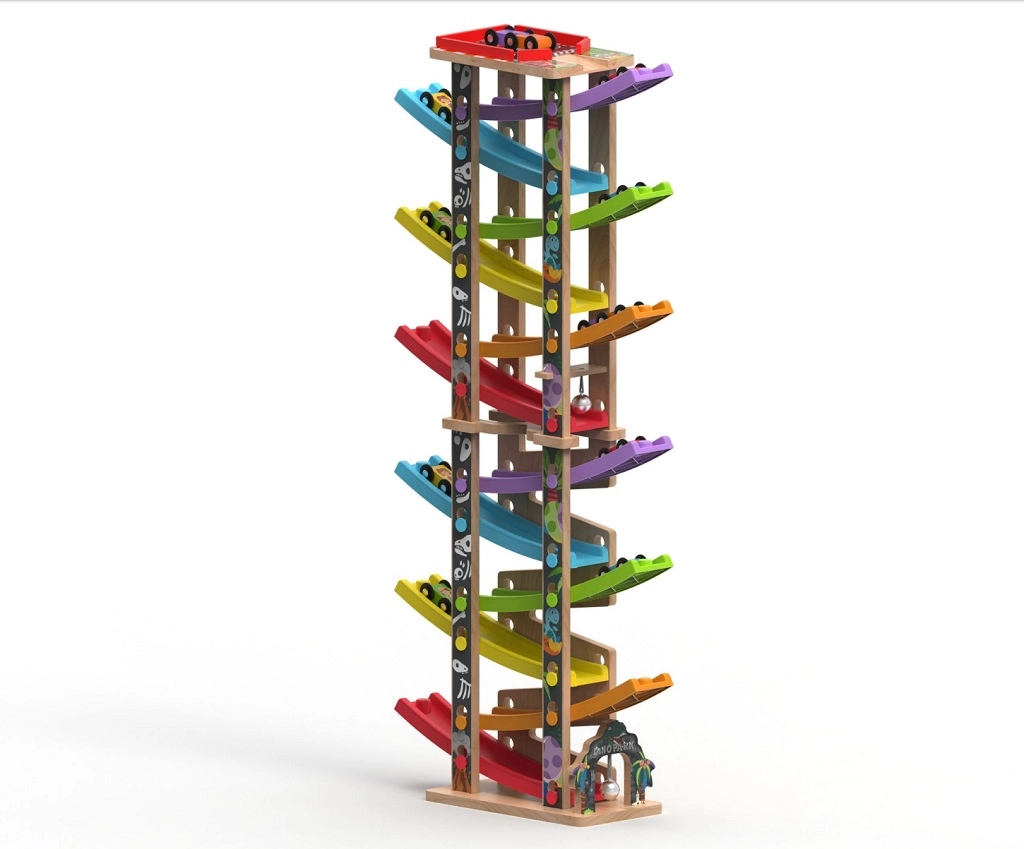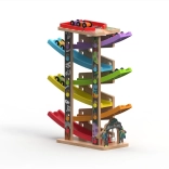 Ta pionowa drewniana wieża wyścigowa z 6 kolorowymi rampami zapewnia dynamiczną zabawę opartą na grawitacji. Dzieci umieszczają samochodzik na górze i obserwują, jak mknie w dół przez kolejne poziomy, zakręty i mostki. Dzięki stabilnej konstrukcji i kompaktowym wymiarom tor świetnie sprawdzi się w pokoju dziecięcym i sali zabaw, a także poradzi sobie z intensywnym użytkowaniem.