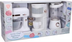 Zabawny zestaw dziecięcych kuchennych urządzeń PLAYGO wprowadza realistyczną zabawę w kuchni. Zawiera mikser, ekspres do kawy ze zbiornikiem na wodę oraz robot kuchenny z funkcjami, które zachwycą dzieci i rozwiną ich wyobraźnię.