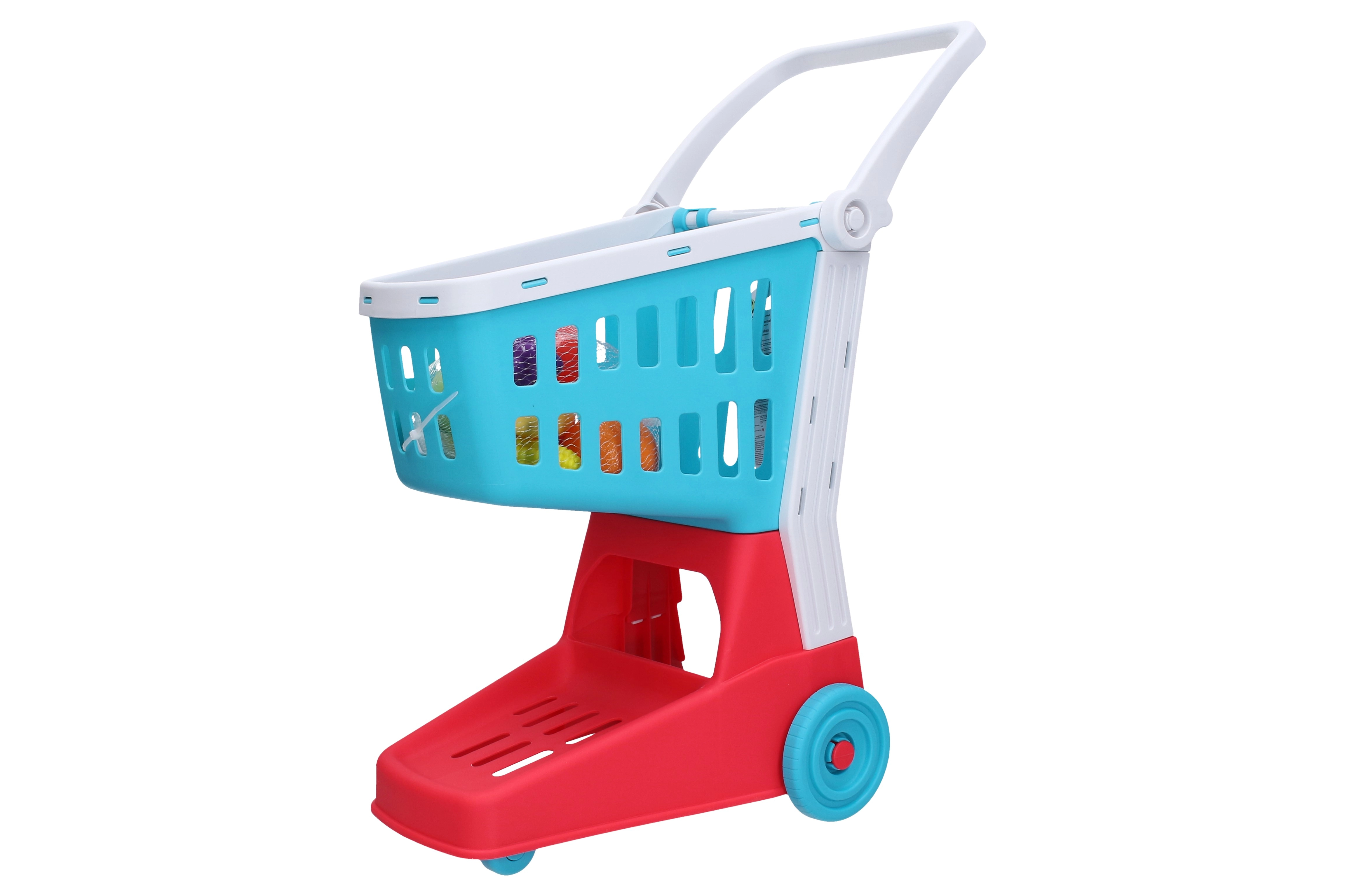 - Dziecięcy wózek sklepowy z artykułami spożywczymi
