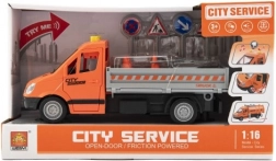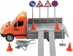 Zadbaj o porządek w mieście z dopracowanym samochodem do utrzymania dróg. Dzięki napędowi sprężynowemu pojazd rusza po popchnięciu, efekty świetlne i dźwiękowe potęgują atmosferę prawdziwej pracy na drodze, a dołączone znaki, pachołki i akcesoria poszerzają możliwości zabawy.