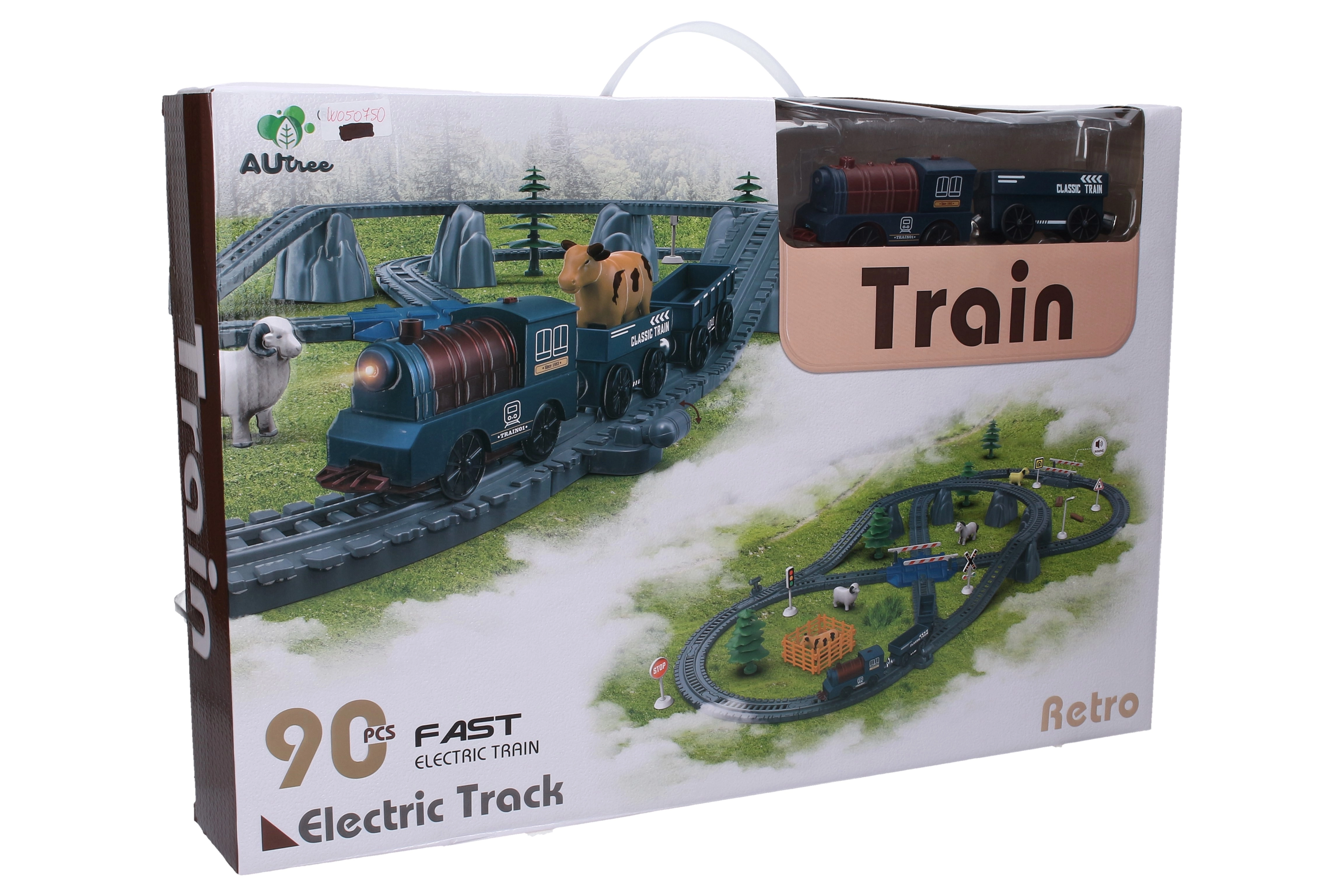 Zabawna kolejka o wymiarach 112 × 61 × 7,5 cm ucieszy małych miłośników pociągów. Zestaw z 90 elementami oferuje łączenie wagoników magnesami, efekty dźwiękowe oraz łatwe sterowanie kierunkiem jazdy przełącznikiem na lokomotywie. Bateria 1× CR2032 (3 V) w zestawie, lokomotywa wymaga 1× AA (1,5 V) – brak w zestawie.