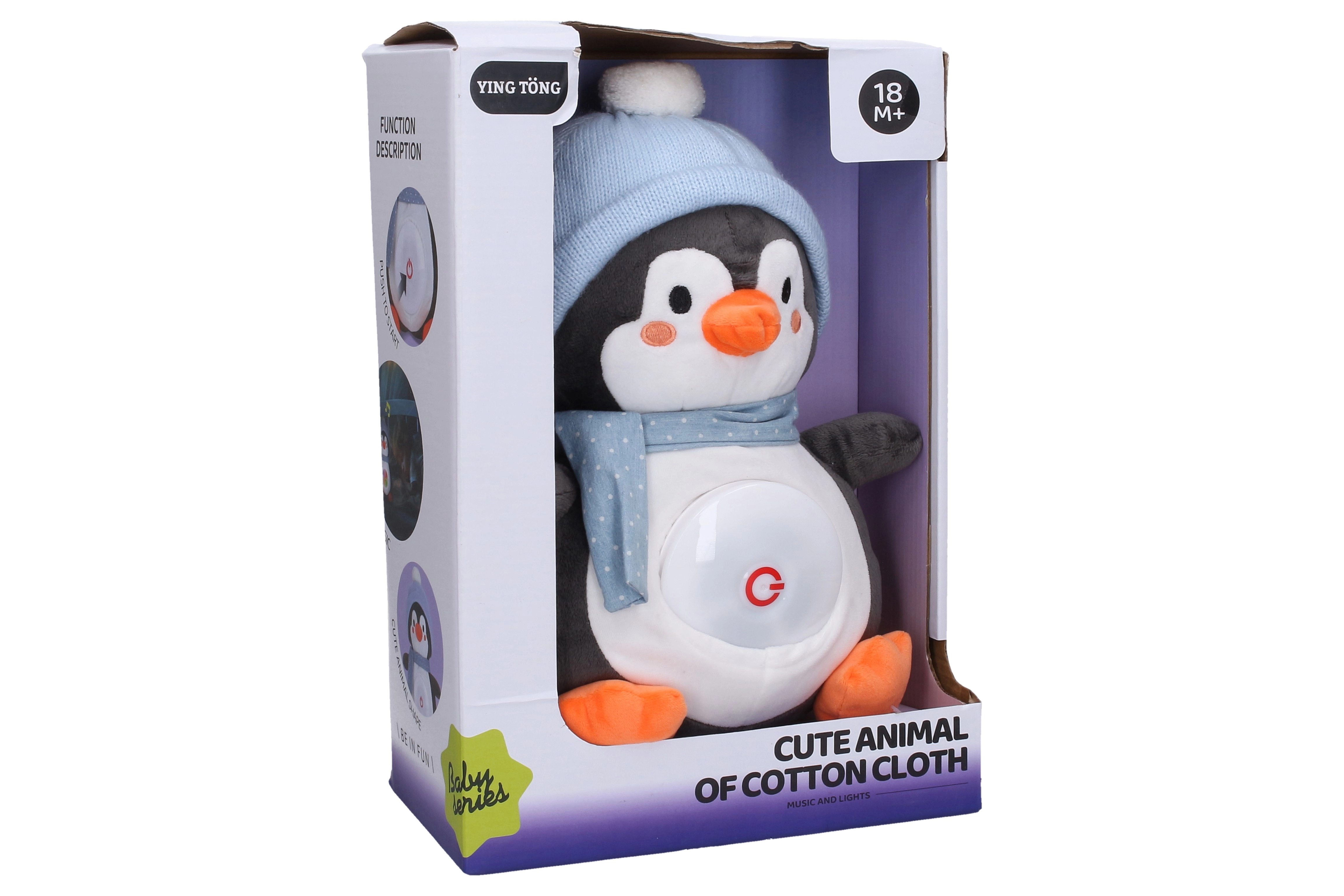 Ten mięciutki pingwin–usypiacz tworzy przyjemną atmosferę do zasypiania. Brzuszek zabawki podczas odtwarzania płynnie zmienia kolory, co daje dzieciom poczucie bezpieczeństwa i spokoju. Dzięki przejrzystemu sterowaniu na brzuszku łatwo uruchomisz i przełączysz jedną z 5 melodii.