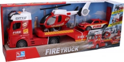 Zestaw do zabawy strażacki – ciągnik, helikopter i auto