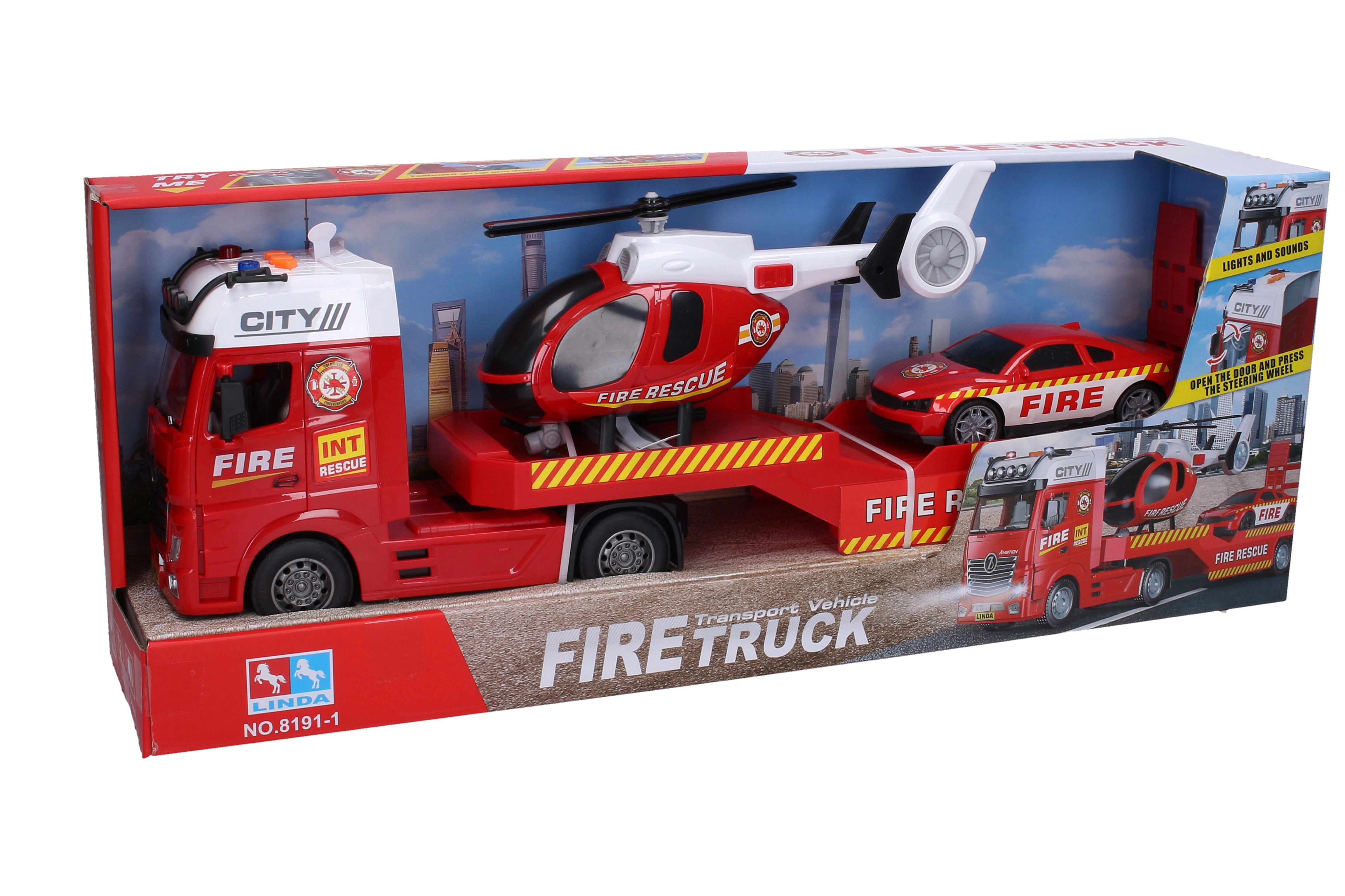 strażacki ciągnik z helikopterem i efektami 55 cm – zestaw do zabawy