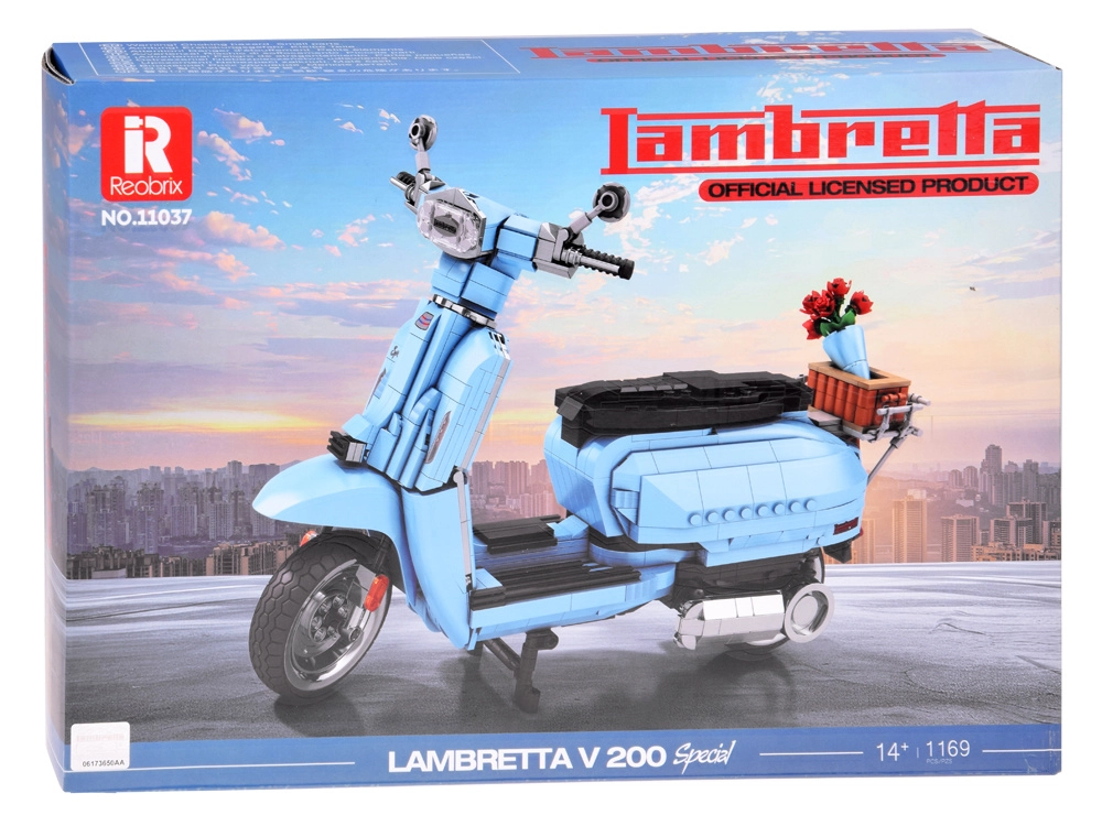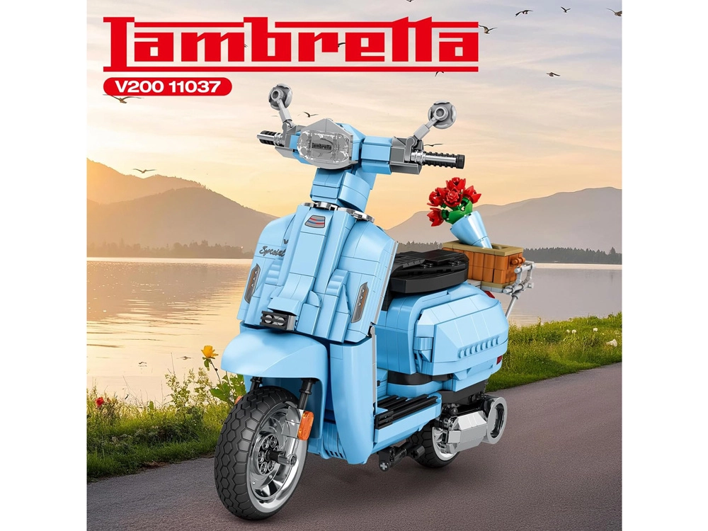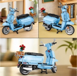 Zbuduj kultowy włoski skuter LAMBRETTA V200 Special w eleganckim, jasnoniebieskim kolorze. Licencowany zestaw z 1169 elementami zachwyci kolekcjonerów i miłośników designu. Oferuje wierne detale, stabilną podpórkę, otwierane elementy oraz stylowy tylny koszyk z różami do efektownej ekspozycji.