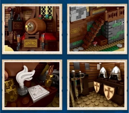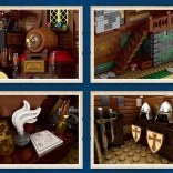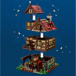 Ta duża średniowieczna chata/karczma to idealne miejsce dla rycerzy i szlachty po wymagających wyprawach. Czeka na Ciebie bogato opracowane wnętrze i otoczenie: od beczki z „lane piwo”, przez stoły z pucharami, po zbrojownię z mieczami i tarczami. Dzięki 2868 elementom zbudujesz szczegółowy budynek z wieloma poziomami i dekoracjami, które pobudzą wyobraźnię i opowiadanie historii.