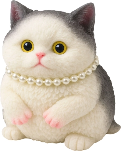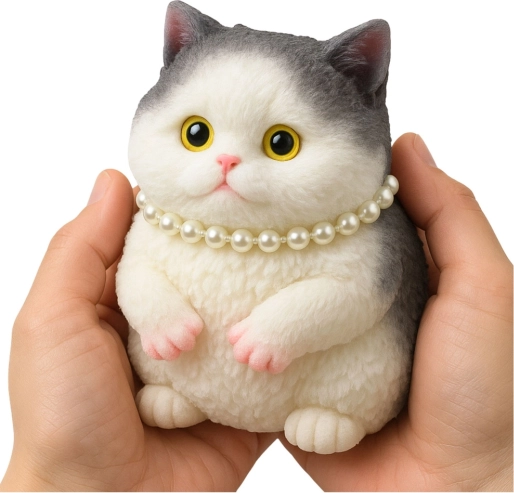 Kotek z perłowym naszyjnikiem wygląda słodko i elegancko, dlatego doskonale sprawdzi się także jako dekoracyjny dodatek. Nadaje się do relaksu, treningu małej motoryki oraz jako pomoc w aktywnościach sensorycznych dla dzieci i dorosłych.