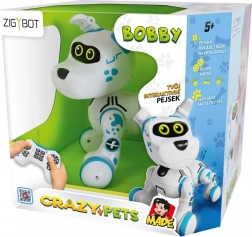 Uroczy robotyczny pupil Zigybot Bobby zapewni dzieciom godziny zabawy i nauki. Potrafi reagować na dotyk, wydaje psi dźwięki, merda ogonem, kręci się w kółko i siada. Można nim sterować pilotem zdalnego sterowania lub programować ruchy, dzięki czemu dzieci łatwo stworzą własnego, posłusznego pieska – bez bałaganu i zmartwień.