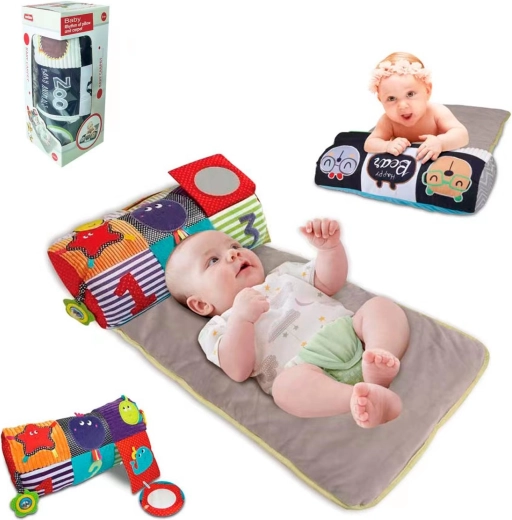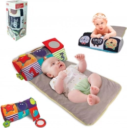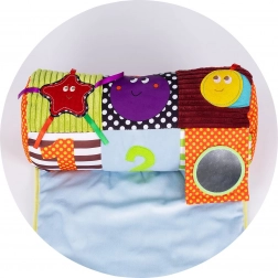Kontrastowe kolory, tekstury i drobne zabawki wspierają rozwój wzroku, dotyku i koordynacji. Dzięki niskiej wadze zestaw jest idealny do domu i na wyjazdy – zawsze gotowy do bezpiecznej zabawy i relaksu.