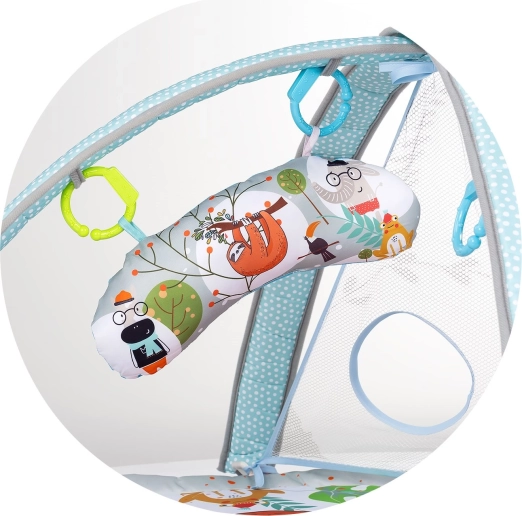 - Wsparcie rozwoju: koordynacja ręka–oko, chwytanie, obracanie się i raczkowanie.