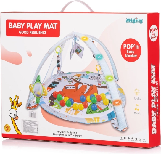 Dzięki odpinanym pałąkom szybko przekształcisz matę w basenik z piłeczkami, który wydłuża czas użytkowania i zabawy wraz z rozwojem dziecka. Łatwe składanie i przechowywanie czynią ją praktycznym pomocnikiem w domu i w podróży.