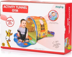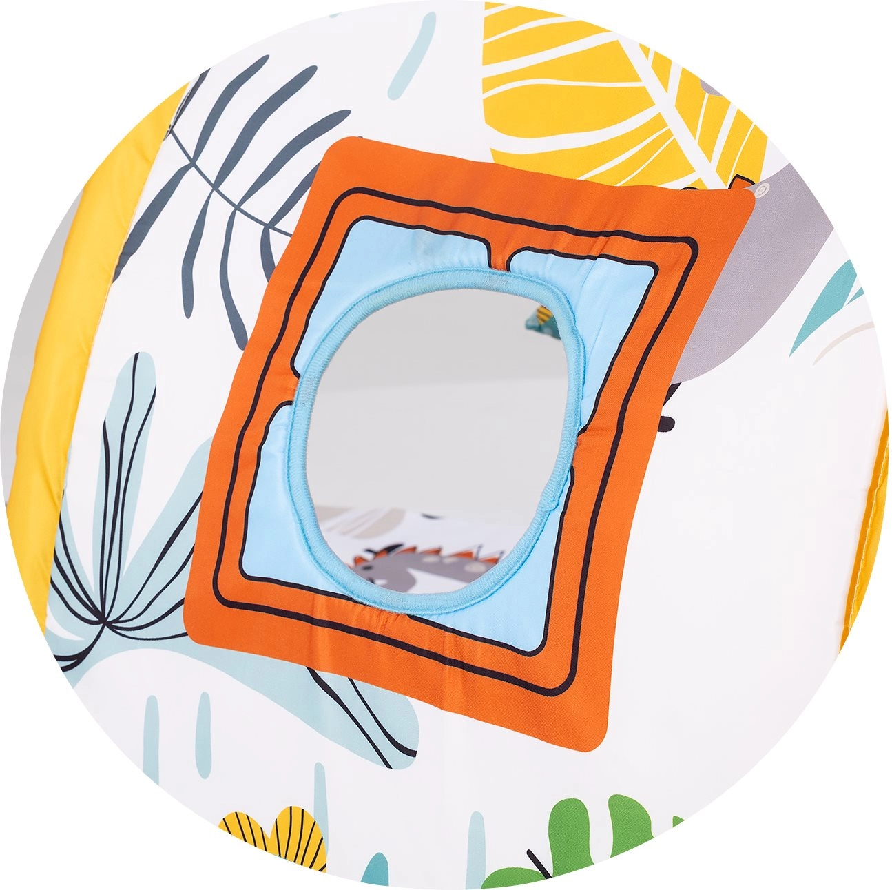 Dzięki bezpiecznemu i wygodnemu wykonaniu mata oferuje przyjemne miejsce do zabawy na brzuszku i na plecach. Okienka i detale tunelu zachęcają do zaglądania i zabawy w chowanego, co rozwija ciekawość i wyobraźnię. Kolorowe elementy i faktury dostarczają bogatych bodźców dla rozwoju sensorycznego oraz pierwszych interakcji społecznych z rodzicami.