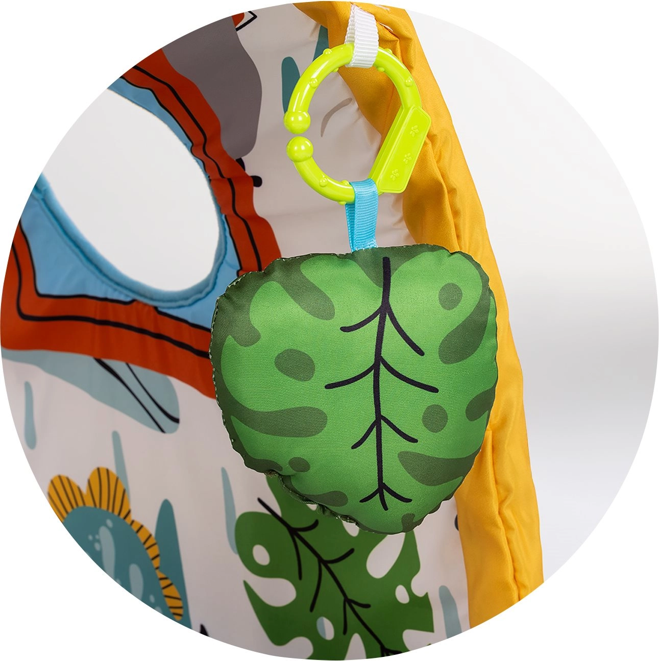 Wyściełana mata z pałąkiem i zawieszonymi zabawkami motywuje maluszka do chwytania i wzmacnia koordynację ręka–oko.