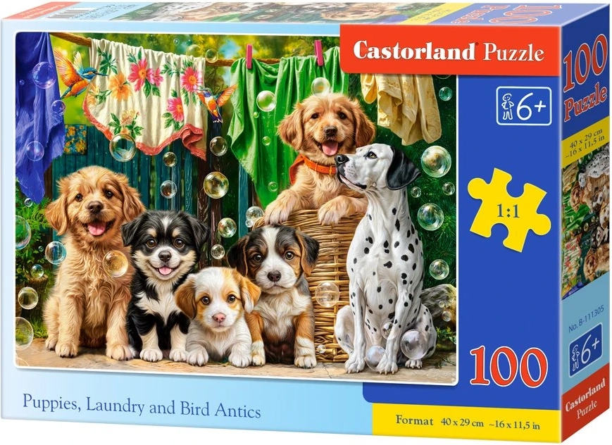 Castorland puzzle szczeniaki, pranie i ptasie psoty 100 elementów