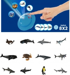 Projektor z motywami morskimi, 2 krążki projekcyjne, figurki morskich zwierząt