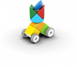 - 13 elementów łącznie: magnetyczne części o różnych kształtach i kolorach + kółka z podwoziami