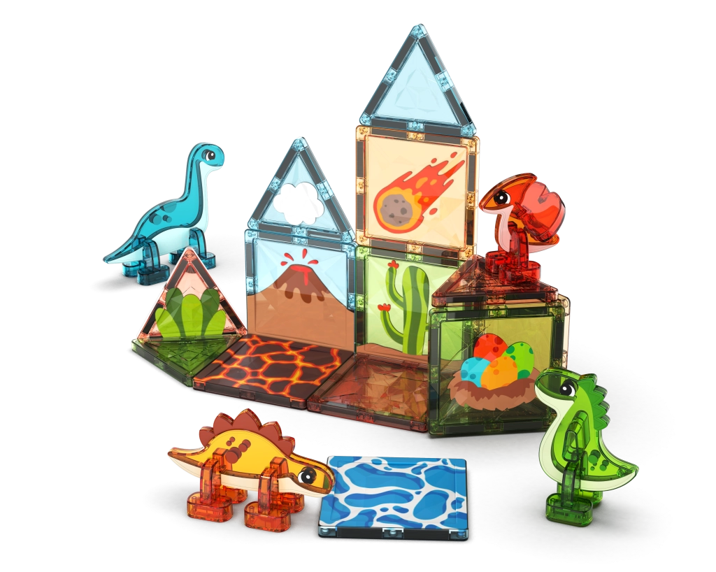 W zestawie znajdują się także 4 figurki dinozaurów, które dodają zabawie fabuły i zmieniają każdą budowlę w przygodę. Zestaw jest idealny do pierwszego poznawania zasad magnetyzmu, rozwijania małej motoryki oraz myślenia logicznego.