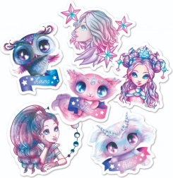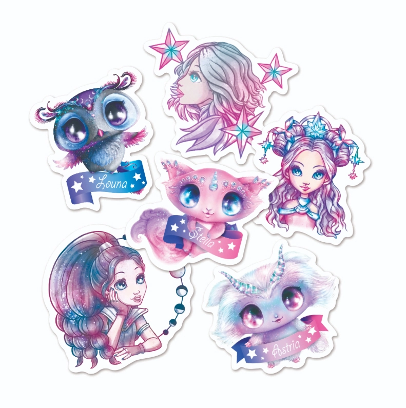 Rozjaśnij swoje rzeczy oryginalnymi motywami NEBULOUS STARS. Naklejki z wytrzymałego winylu mają błyszczące wykończenie, precyzyjne wycięcia oraz piękne ilustracje dziewcząt i uroczych zwierzątek z elementami star & fantasy. Dzięki wodoodporności dobrze trzymają się na butelkach na wodę, plannerach i elektronice, a także wytrzymują codzienną wilgoć.