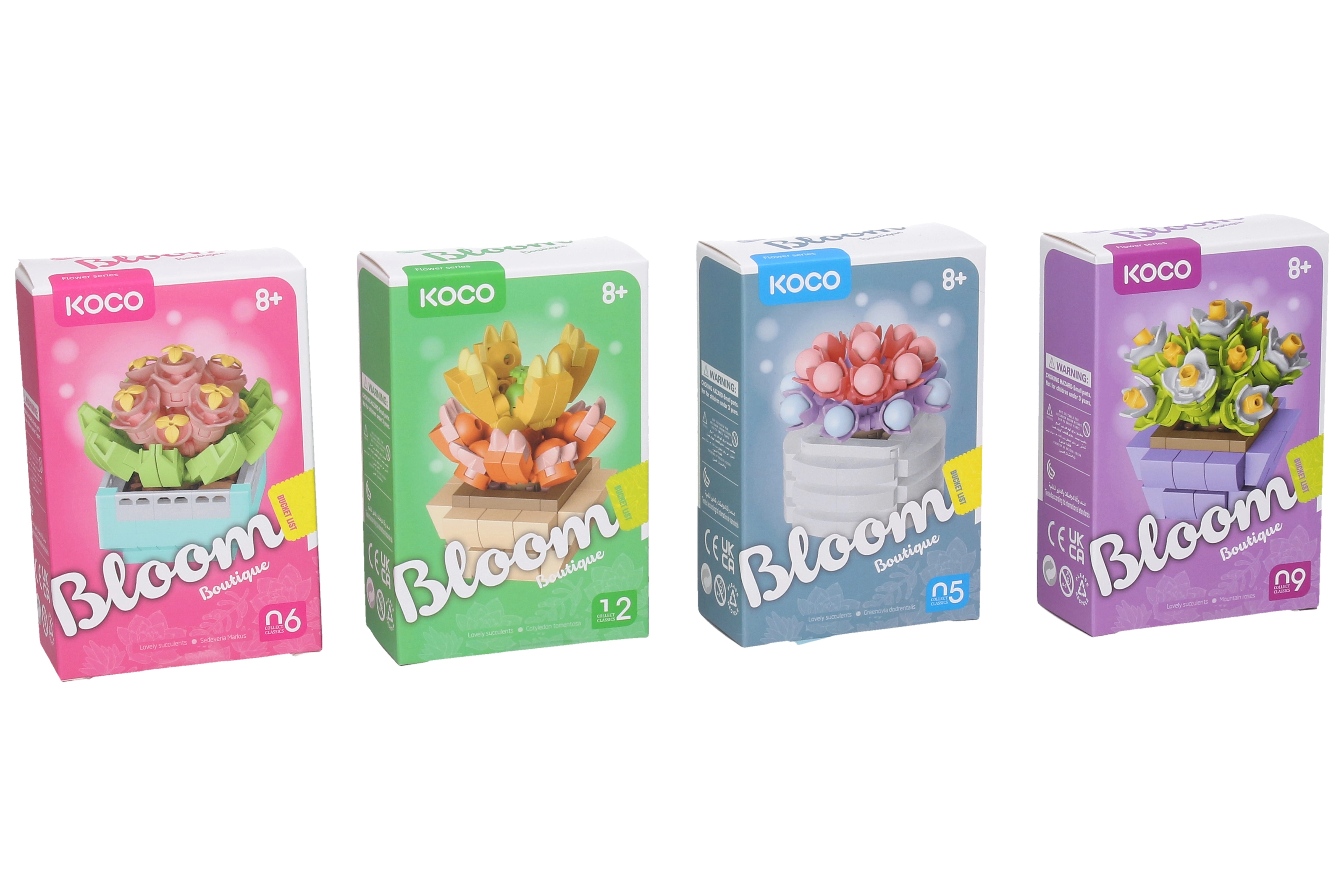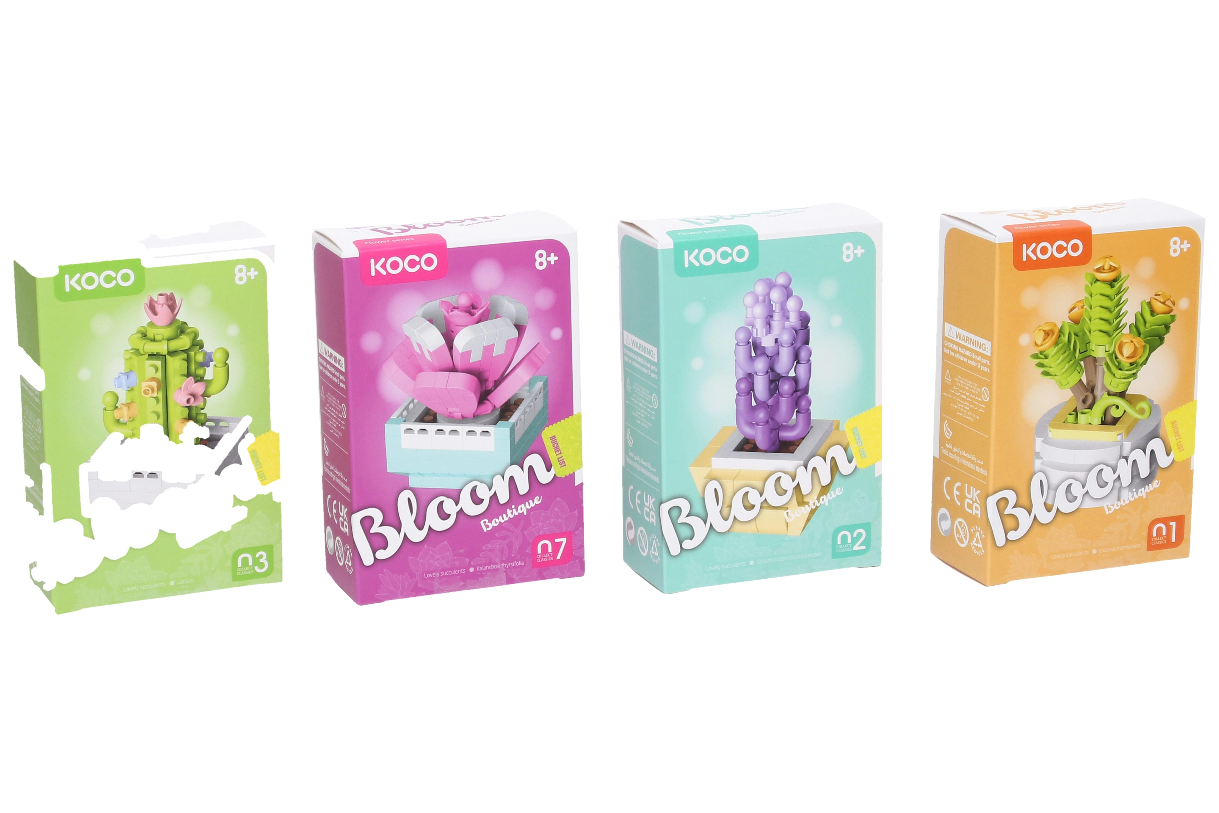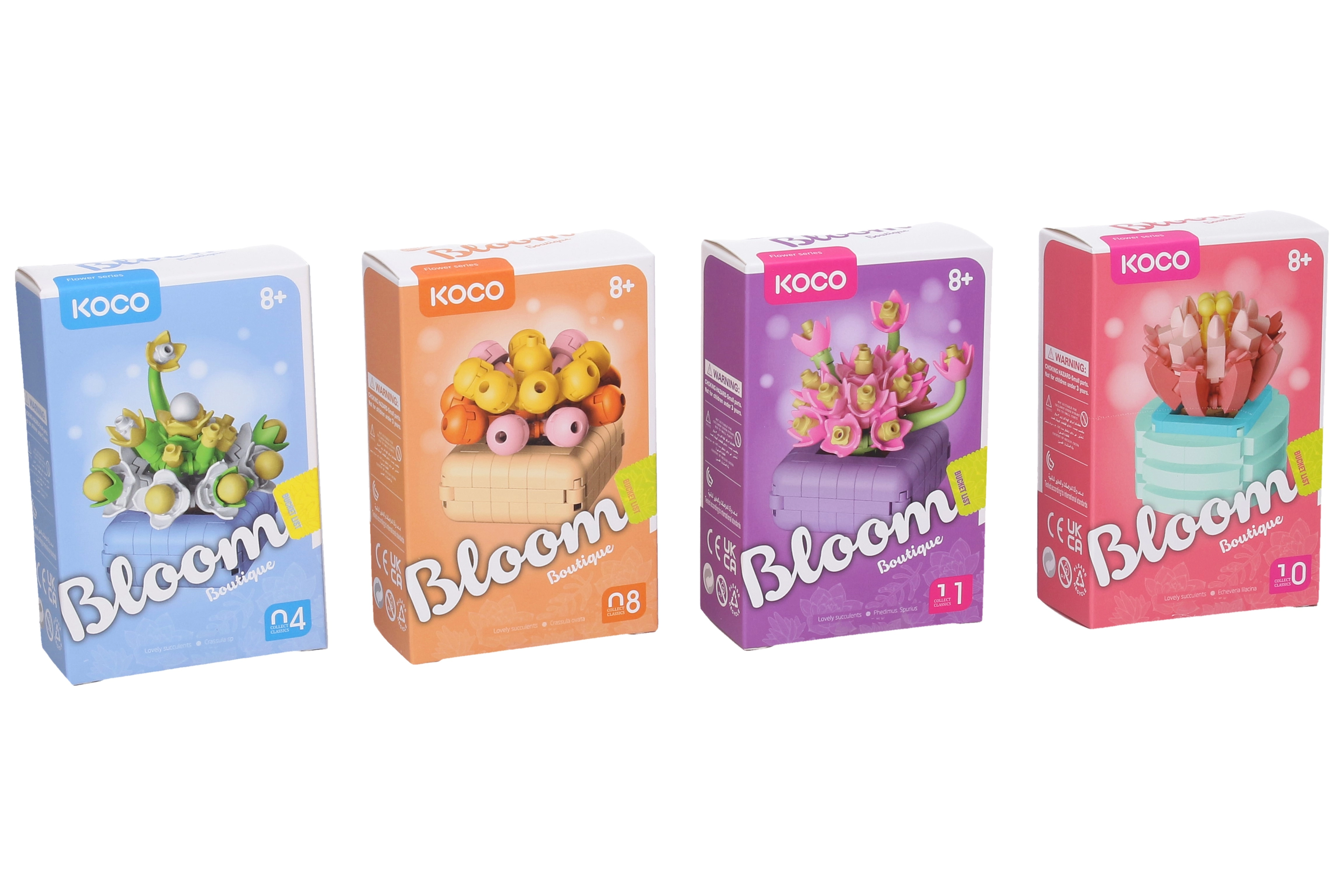 KOCO mini klocki rośliny łączą zabawę i relaks. Każdy zestaw pozwala zbudować uroczy kwiatek lub roślinkę w mini doniczce, idealną jako dekoracja do pokoju dziecięcego, biura lub salonu. Dzięki czytelnej instrukcji obrazkowej i narzędziu do rozdzielania klocków składanie jest proste także dla początkujących.