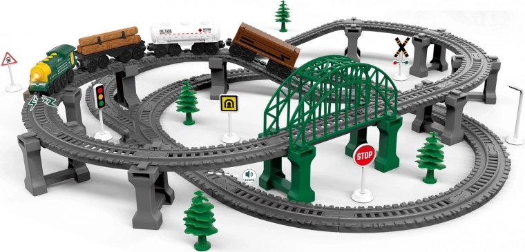 Ten zestaw kolejowy zapewnia dzieciom godziny kreatywnej zabawy. Dzięki magnetycznie połączonym wagonikom obsługa jest łatwa i bezpieczna. Na lokomotywie znajdują się praktyczne przyciski sterujące – środkowy służy jako ON/OFF, bocznymi przyciskami ustawisz kierunek jazdy. Specjalny odcinek toru aktywuje efekty dźwiękowe, które dodają przejażdżce autentyczności.