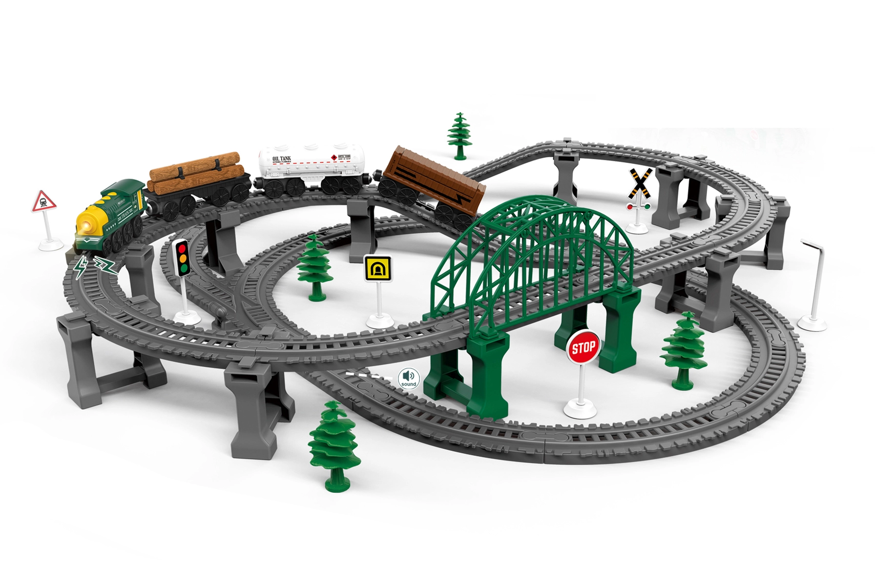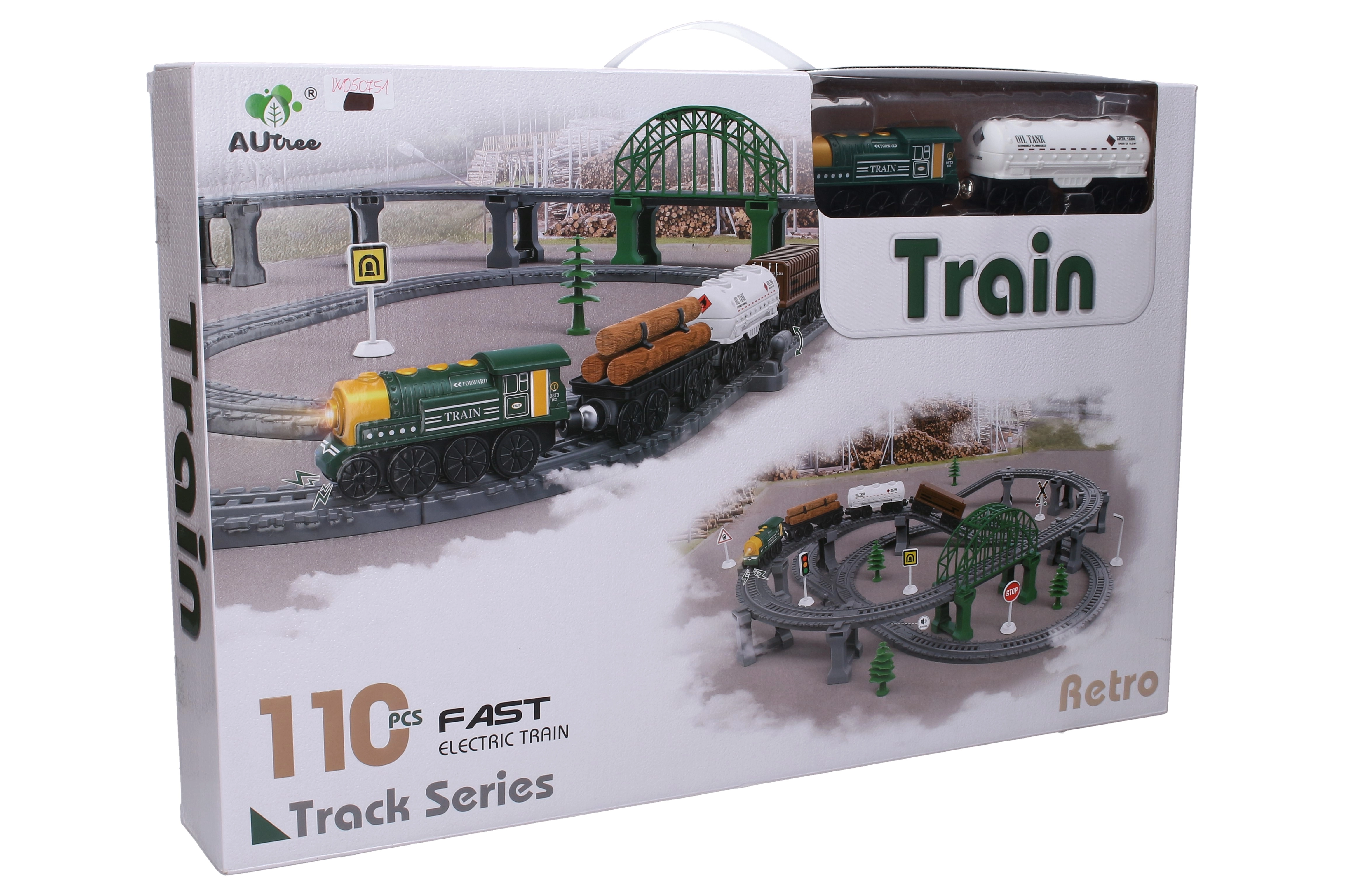 Odkryj zabawne tory kolejowe z efektami dźwiękowymi, które ucieszą małych miłośników pociągów. Zestaw 110 elementów po złożeniu ma wymiary 77 × 76 × 16 cm, zawiera magnetycznie łączony pociąg i sterowanie bezpośrednio na lokomotywie. Wybrane odcinki toru uruchamiają realistyczne dźwięki, a dzieci mogą jechać do przodu i do tyłu dzięki przyciskom kierunkowym. Baterie do toru są dołączone do opakowania, do lokomotywy należy dokupić osobno.