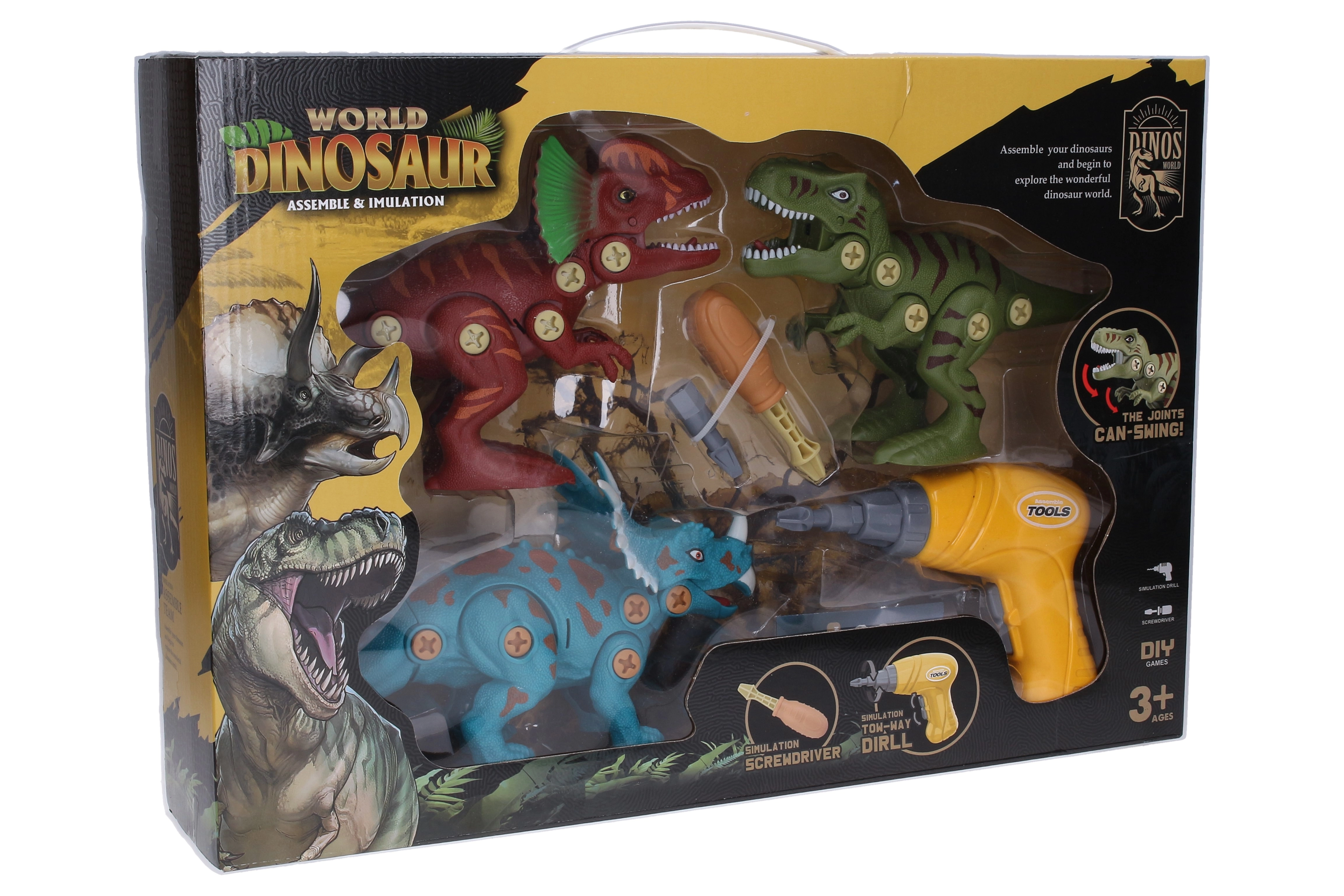 - Kompletny zestaw: 3 dinozaury, wkrętak elektryczny i manualny, instrukcja