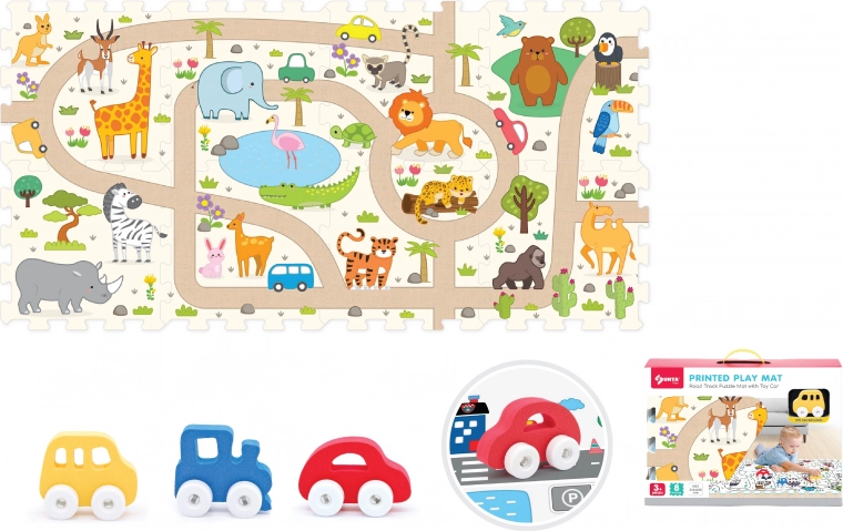 Odkryj zabawną i bezpieczną zabawę z tym zestawem miękkich klocków i autkiem safari. Zestaw zawiera 8 miękkich klocków o wymiarach 31,5 × 31,5 × 1 cm oraz autko z wolno toczącymi się kołami, które wspiera kreatywność, motorykę i bezpieczną zabawę w domu i w przedszkolu.