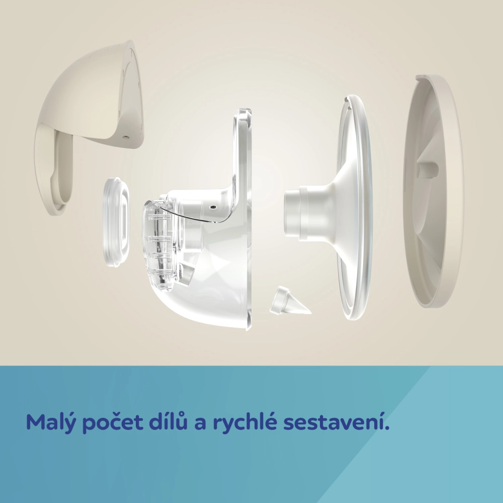 - Zbiornik na mleko; korpus laktatora z panelem sterowania; silikonowy lejek 24 mm; silikonowe wkładki 17/19/21 mm; pokrywka/podstawka; zawór zwrotny; silikonowa membrana; kabel USB‑C; materiałowa przedłużka do biustonosza (1 szt.)