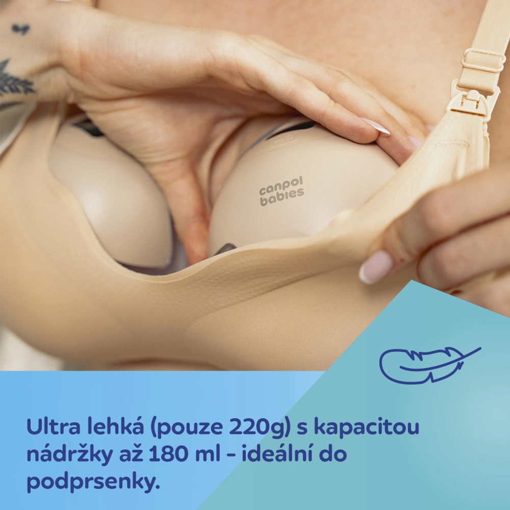 Dyskretny i bezprzewodowy laktator do biustonosza CANPOL BABIES SmartSense oferuje maksymalny komfort i swobodę ruchu dla aktywnych mam. Dzięki technologii SkinFIT idealnie przylega do piersi bez wycieku mleka, zapewnia moc ssania do 36 kPa, 4 tryby odciągania z 12 poziomami, cichą pracę do 50 dB, ultralekką wagę 220 g oraz pojemność 180 ml. Zintegrowany wyświetlacz, ładowanie USB‑C i czas pracy do 120 minut ułatwiają codzienne używanie w domu, w pracy i w podróży.