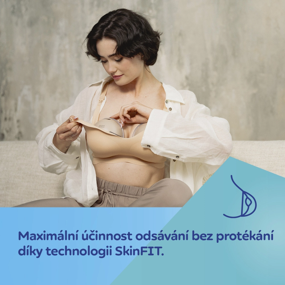 Elastyczny silikonowy lejek SkinFIT przylega do piersi tak, aby symulować kontakt skóra do skóry, zwiększać komfort i minimalizować boczne wycieki mleka. Rezultatem jest efektywne i delikatne odciąganie nawet podczas dłuższego używania.