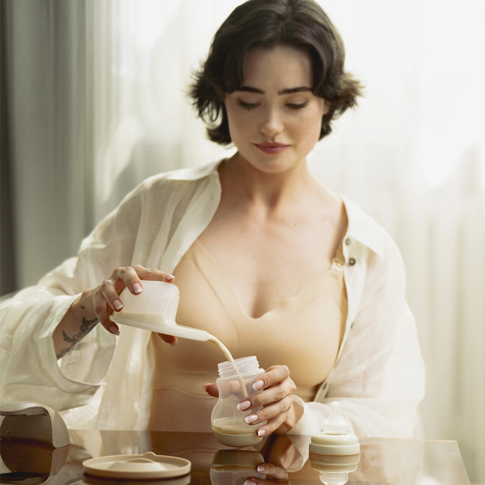 Oferuje 4 inteligentne tryby – stymulacja, odciąganie, delikatny 2w1 i automatyczny – każdy z 12 poziomami intensywności, aby precyzyjnie dopasować działanie do Twoich potrzeb na różnych etapach karmienia. Docenisz także cichą pracę (do 50 dB), ultralekką konstrukcję 220 g, pojemność 180 ml, czas pracy do 120 minut oraz ładowanie przez USB‑C. Prosta konstrukcja z niewielką liczbą części umożliwia szybkie czyszczenie i łatwe składanie.
