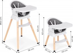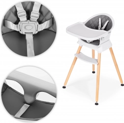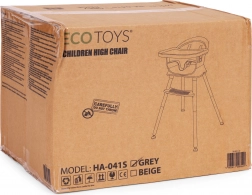 Krzesełko do karmienia dla dzieci 6w1 z pikowanym pokrowcem i tacką, szare ECOTOYS