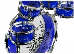 W zestawie znajduje się duży bęben basowy z pedałem, werbel na statywie (snare), tom środkowy, trzy małe tomy, talerz oraz wygodna stołeczka do siedzenia. Dzięki kompaktowym wymiarom zestaw świetnie pasuje do pokoju dziecięcego i motywuje do rozwoju muzycznego, kreatywności oraz koordynacji rąk i nóg.