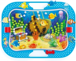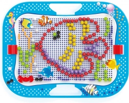 Ta kreatywna mozaikowa zabawa jest idealna dla przedszkolaków i młodszych uczniów. Perforowana płyta osadzona jest w solidnej ramie z zaokrąglonymi krawędziami, dzięki czemu jest bezpieczna i wygodna w użyciu. Za pomocą kolorowych kołeczków dzieci tworzą wesołe motywy z oceanu – od barwnych rybek po inne morskie stworzenia. Dzięki szablonom oraz swobodnej twórczości rozwijają wyobraźnię i cierpliwość.