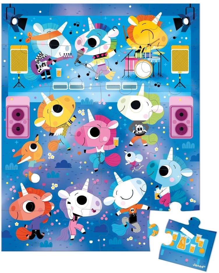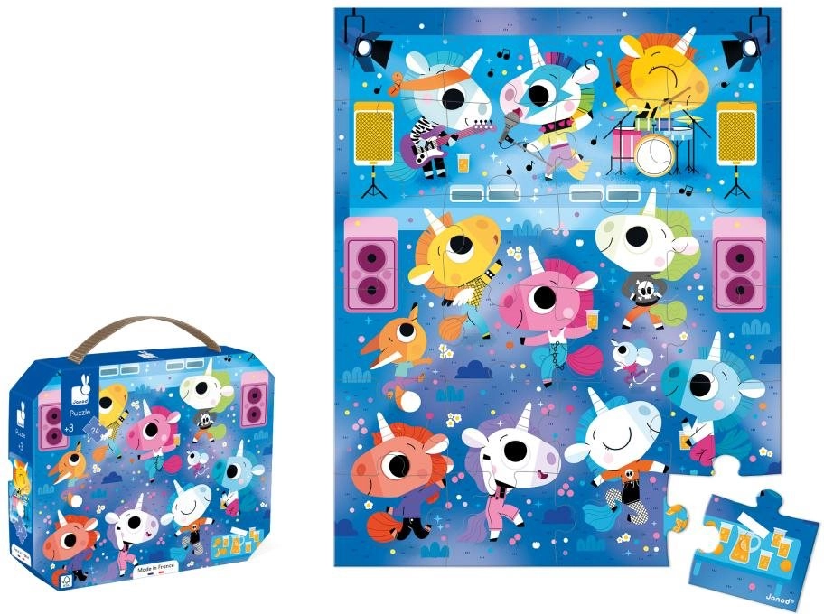 Odkryj urokliwe puzzle w walizeczce marki Janod z motywem koncertu jednorożców. Dzięki 24 solidnym elementom dzieci łatwo ułożą duży obrazek o wymiarach ok. 50 × 40 cm. Praktyczna kartonowa walizeczka z rączką sprawdzi się w domu i w podróży, a wszystkie elementy pozostaną na swoim miejscu.