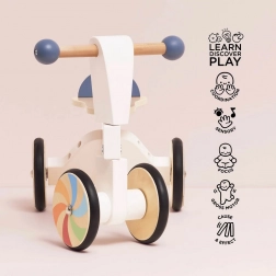Stylowa jazda dla małych odkrywców: drewniany jeździk z certyfikowanego materiału FSC® z kółkami w kolorach tęczy. Oferuje wygodne siedzisko, łatwo sterowną kierownicę i bezpieczne, nietoksyczne farby na bazie wody. Idealny na pierwsze samodzielne przejażdżki, które rozwijają równowagę i koordynację.