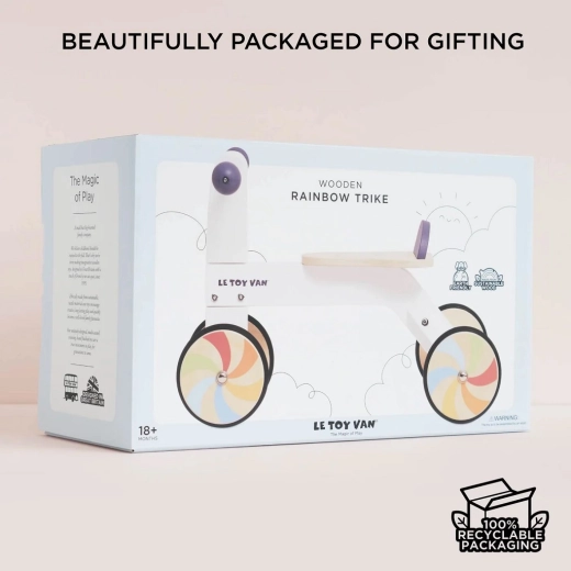 Odkryj radość ruchu z eleganckim jeździkiem LE TOY VAN w tęczowym designie. Starannie wykonany z drewna z certyfikatem FSC®, łączy zrównoważony charakter, jakość i zabawny wygląd. Dzięki ergonomicznemu siedzisku i płynnie działającej kierownicy to doskonały wybór dla dzieci od 1,5 roku, które uczą się utrzymywać równowagę i rozwijać motorykę.