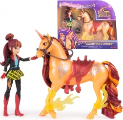 Zestaw UNICORN ACADEMY Valentina i Cinder wprowadza do dziecięcego pokoju świat fantazji inspirowany popularnym serialem Netflix oraz bestsellerową serią książek. Realistyczne detale, metalicznie połyskujące znaki ognistej magii i ruchoma lalka pozwalają tworzyć własne opowieści pełne odwagi i przyjaźni.