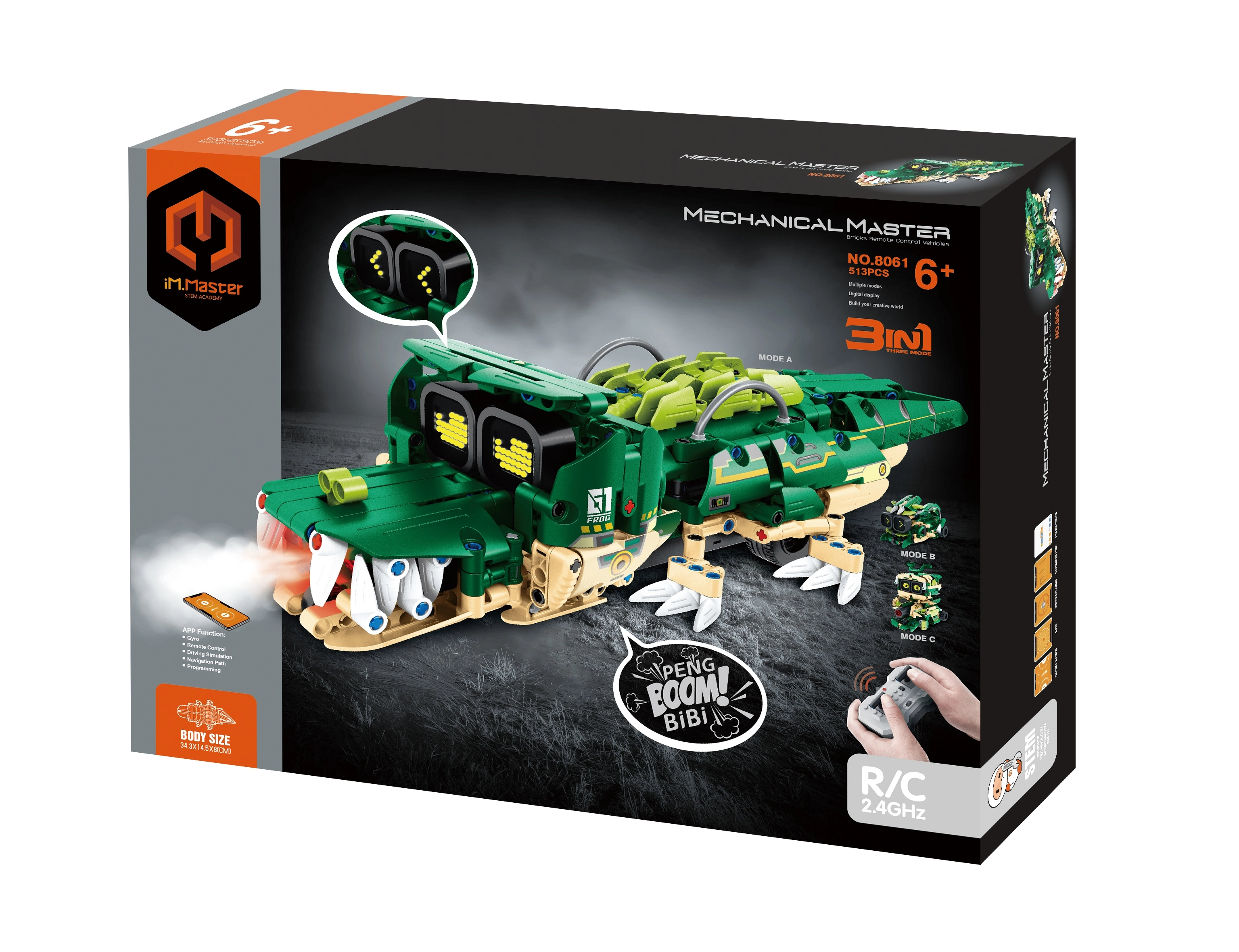 Odkryj kreatywny świat robotyki z zestawem robotycznego krokodyla 3w1. Złóż model główny krokodyla lub inne warianty i steruj nimi wygodnie za pomocą pilota RC. Zintegrowane efekty świetlne dodają zabawie realistycznego charakteru i większej frajdy. Dzięki przemyślanej konstrukcji model jest stabilny i gotowy na długie godziny zabawy.