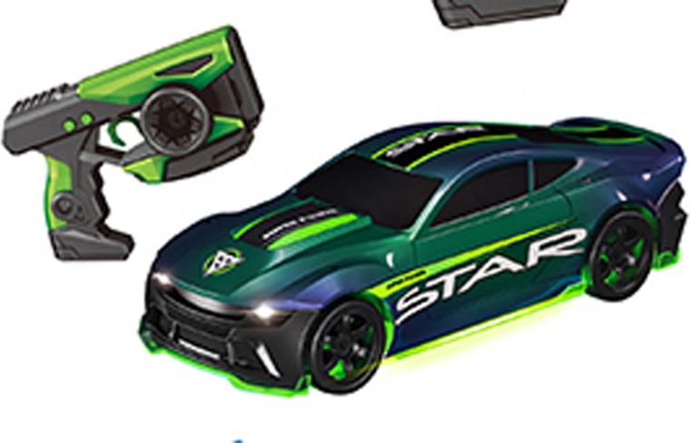 Odkryj dynamiczną jazdę z autem RC STAR w zielonym kolorze. Dzięki wysokiej jakości materiałom model jest odporny na uderzenia, posiada lakierowaną karoserię i jest gotowy na akcję w każdym kierunku. Oświetlenie LED zmienia kolor w zależności od prędkości (zielony, niebieski, czerwony), dzięki czemu każda jazda świetnie wygląda nawet o zmierzchu.