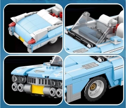 Zbuduj kultowy samochód w duchu lat 50.: niebieski kabriolet z długą maską, niską sylwetką i chromowanymi detalami. Z 308 elementów stworzysz realistyczny model o eleganckim designie, średnim poziomie trudności i stabilnej konstrukcji – idealny dla fanów technicznych zestawów i klasycznej estetyki motoryzacyjnej.