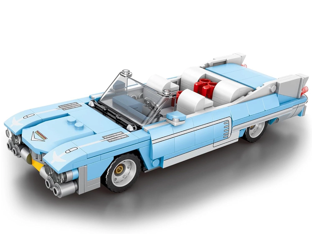 Niebieski kabriolet inspirowany amerykańskimi klasykami lat 50. zachwyca czystymi liniami nadwozia i stylowym wykończeniem wnętrza. Dzięki 308 precyzyjnie zaprojektowanym elementom budowa jest płynna, angażująca i jednocześnie odpowiednio wymagająca dla każdego pasjonata.