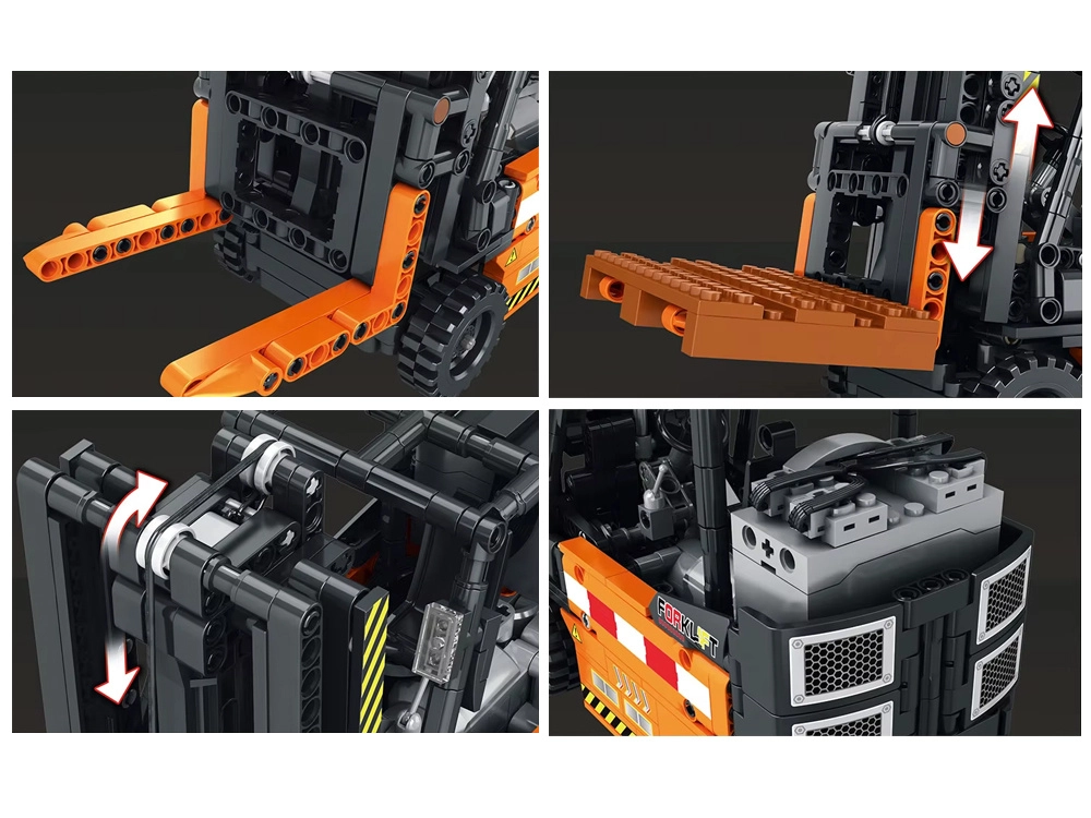 Zestaw RC wózka widłowego to świetny wybór dla małych i dużych fanów techniki oraz mechaniki. Z 722 precyzyjnych elementów zbudujesz stabilny model z realistycznymi funkcjami, które naśladują pracę prawdziwej maszyny. Dzięki sterowaniu pilotem 2,4G lub aplikacją mobilną czeka Cię płynna jazda, podnoszenie ładunku i precyzyjne manewrowanie.
