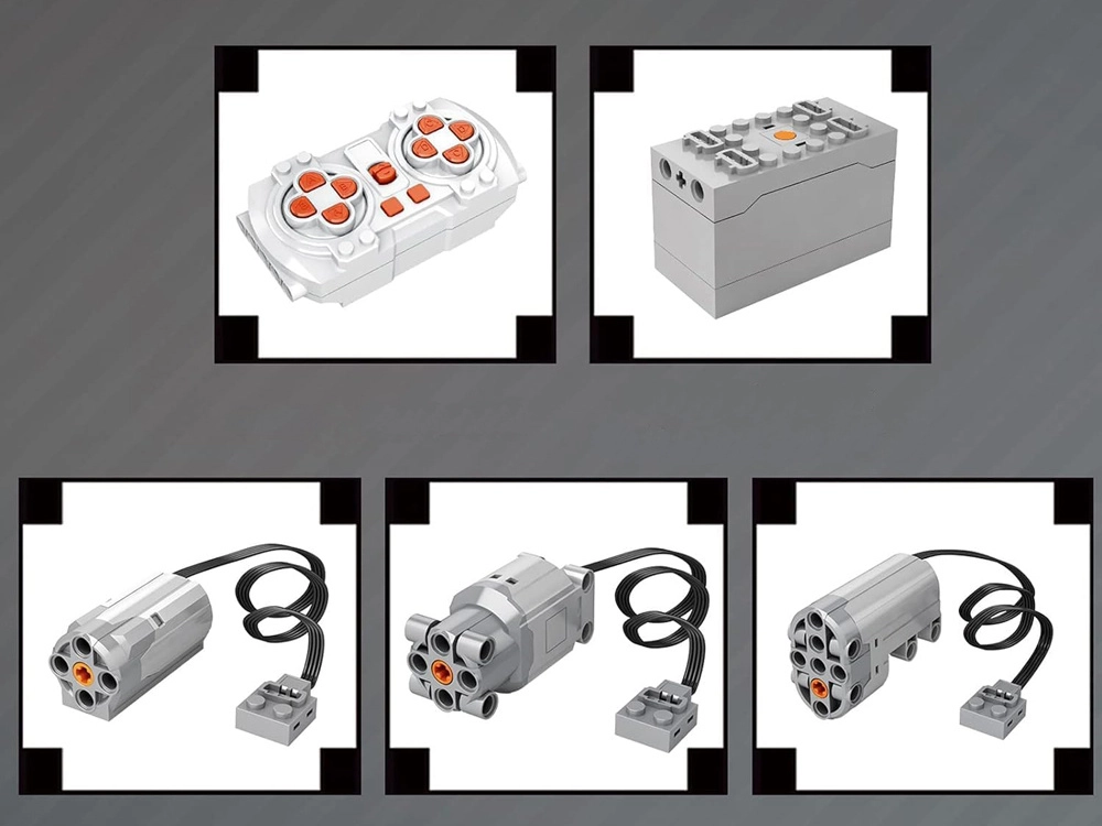 1× silnik M, 1× silnik L, 1× serwomechanizm (z przekładnią)