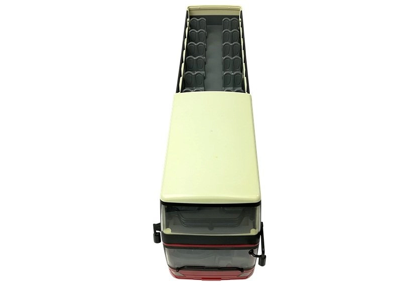 W zestawie znajduje się akumulator 4.8 V oraz ładowarka USB, dzięki czemu autobus szybko jest gotowy do jazdy. Dołączone poręcze umożliwiają łatwo przekształcić górny pokład w otwarty autobus wycieczkowy cabrio. Miękkie gumowe opony zapewniają dobrą trakcję i cichą pracę na różnych nawierzchniach.