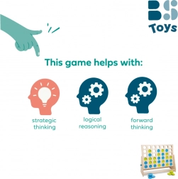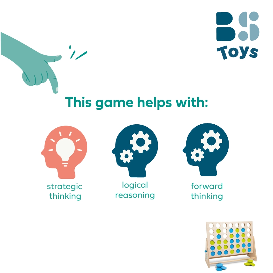 Gracze na zmianę wrzucają niebieskie i zielone żetony do siatki, starając się stworzyć połączenie czterech własnego koloru. Jednocześnie blokują przeciwnika i planują kilka ruchów naprzód – idealny trening logicznego myślenia i taktyki.