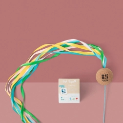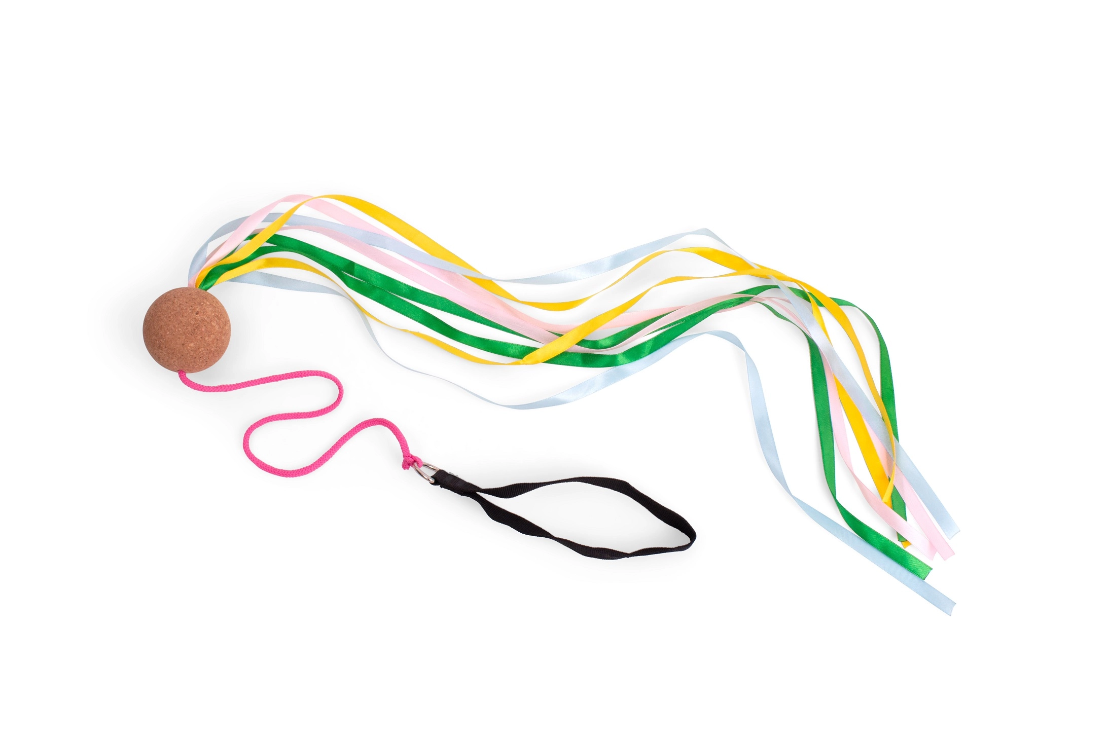 8 materiałowych wstążek (długość 140 cm), rączka 21,5 cm, lina 41 cm, korkowa kula średnica 6 cm